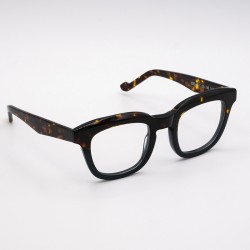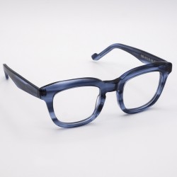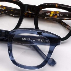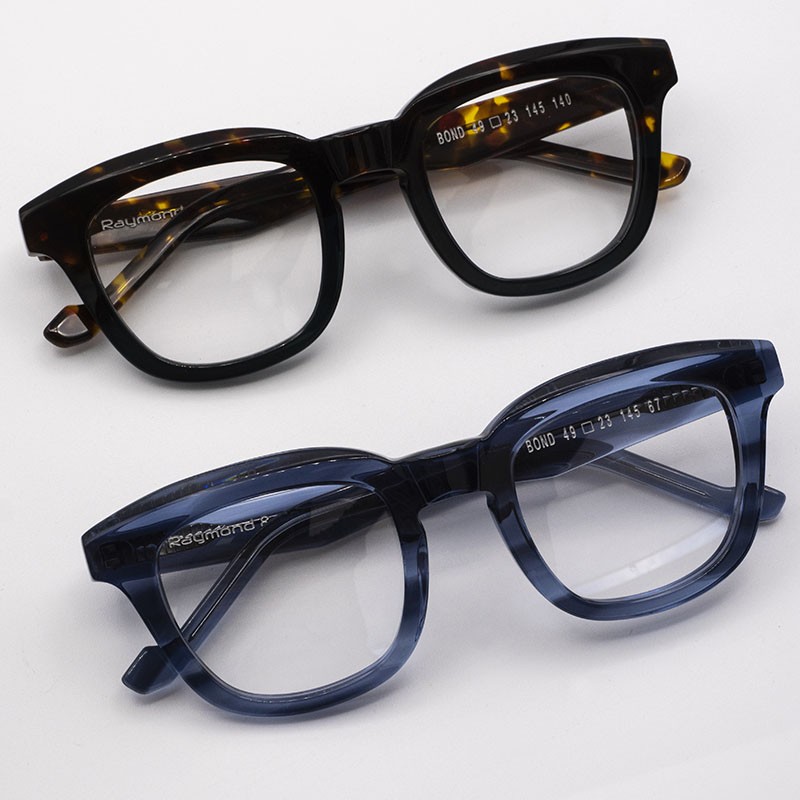 Occhiali con montatura Squadrata disponibile in havana e blu trasparente.Modello Bond di Raymond&Co.